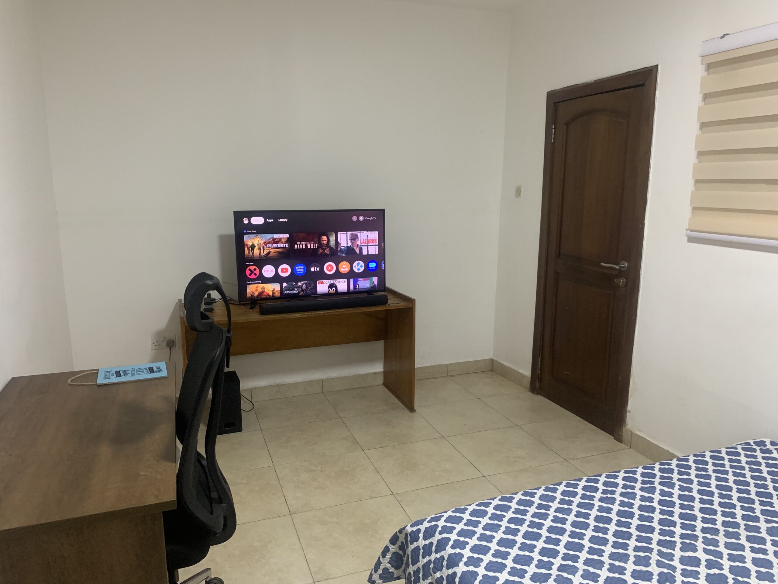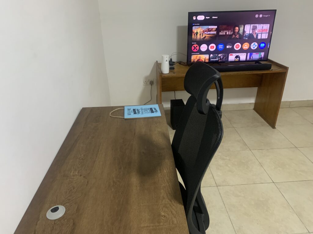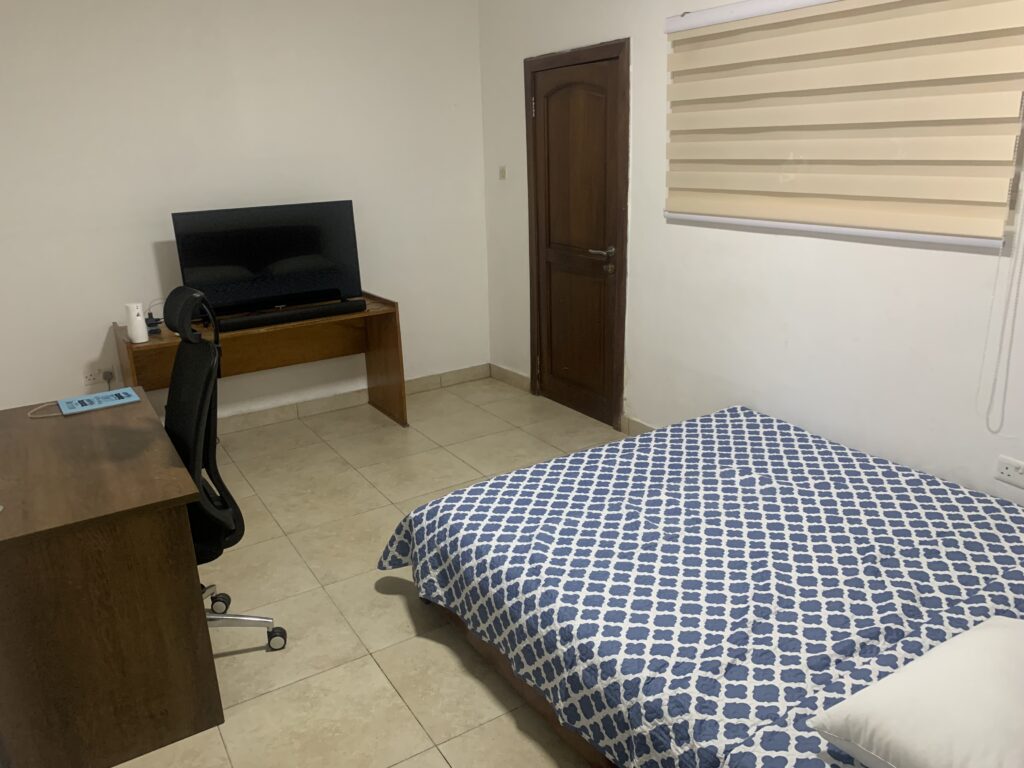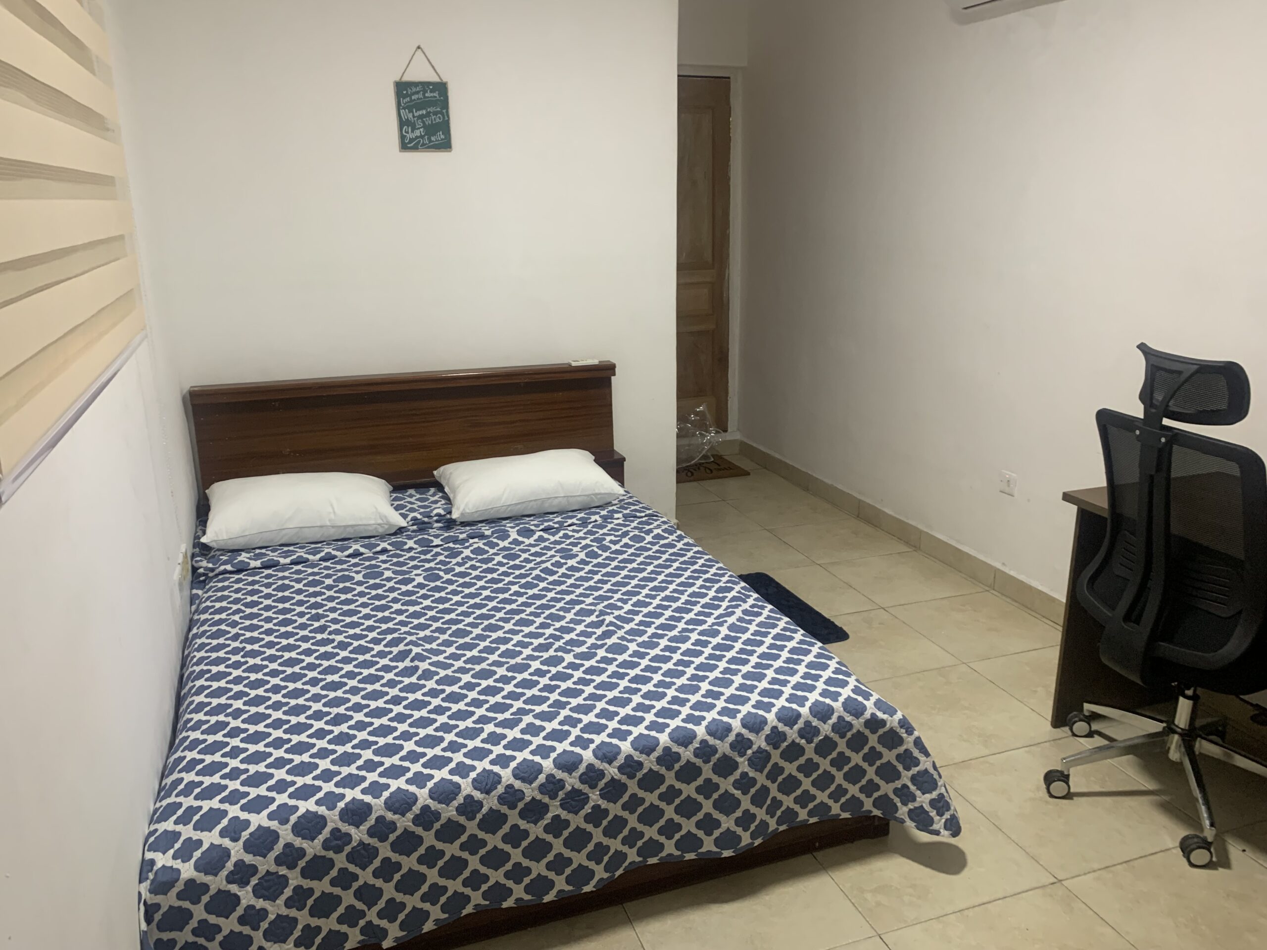 A furnished albeit small room at chapel hill in Takoradi. Goes for only $25 per night for a single room. The room has an external kitchen, free wifi, air-conditioning and a smart TV. You also get a comfy queen-six bed as well as a study desk with an executive office chair. Call 0546058746 to book.